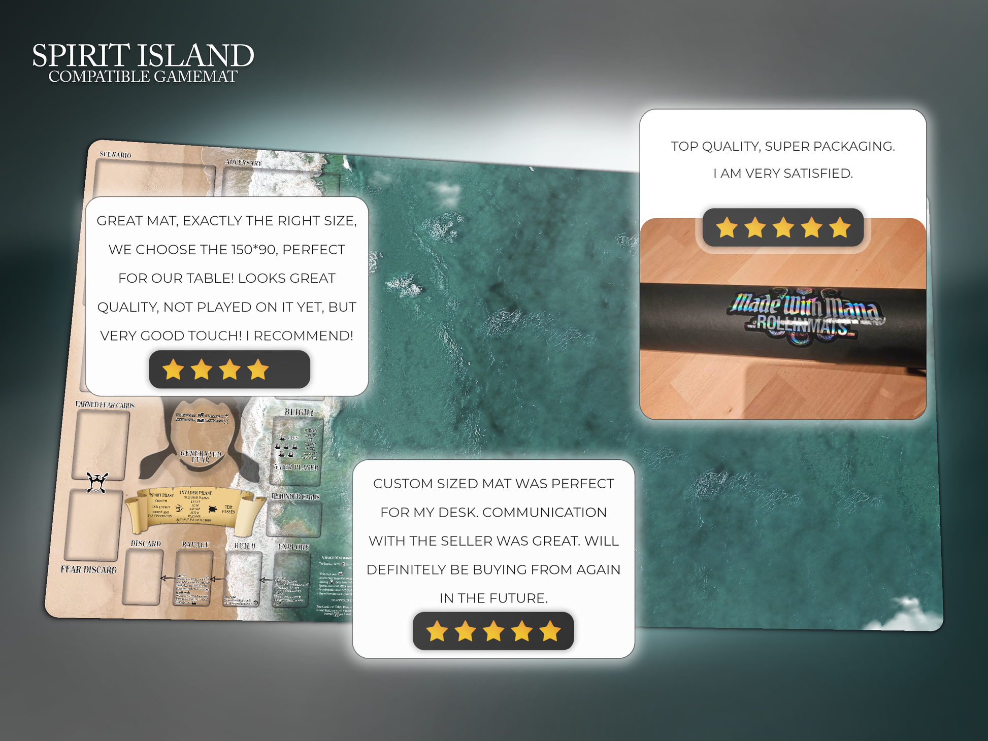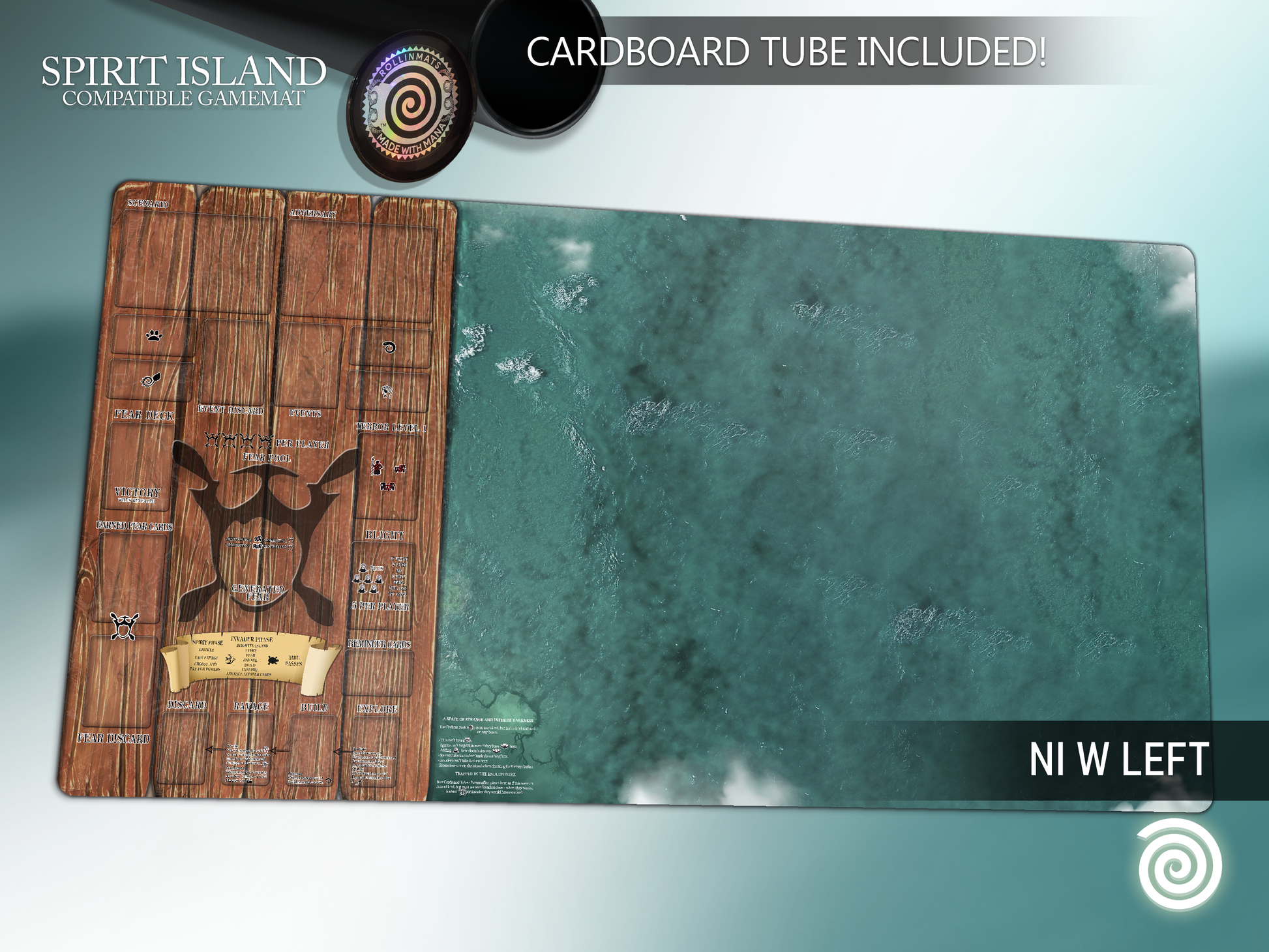 Not an official product of Greater Than Games. Spirit Island Board Game and related terms are trademarks of Greater Than Games. This product is an unofficial compatibility. Rollinmats encourages you to get this game and enjoy it with family or friends.